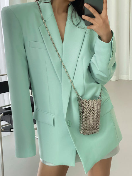 Mint One Button Oversized Blazer